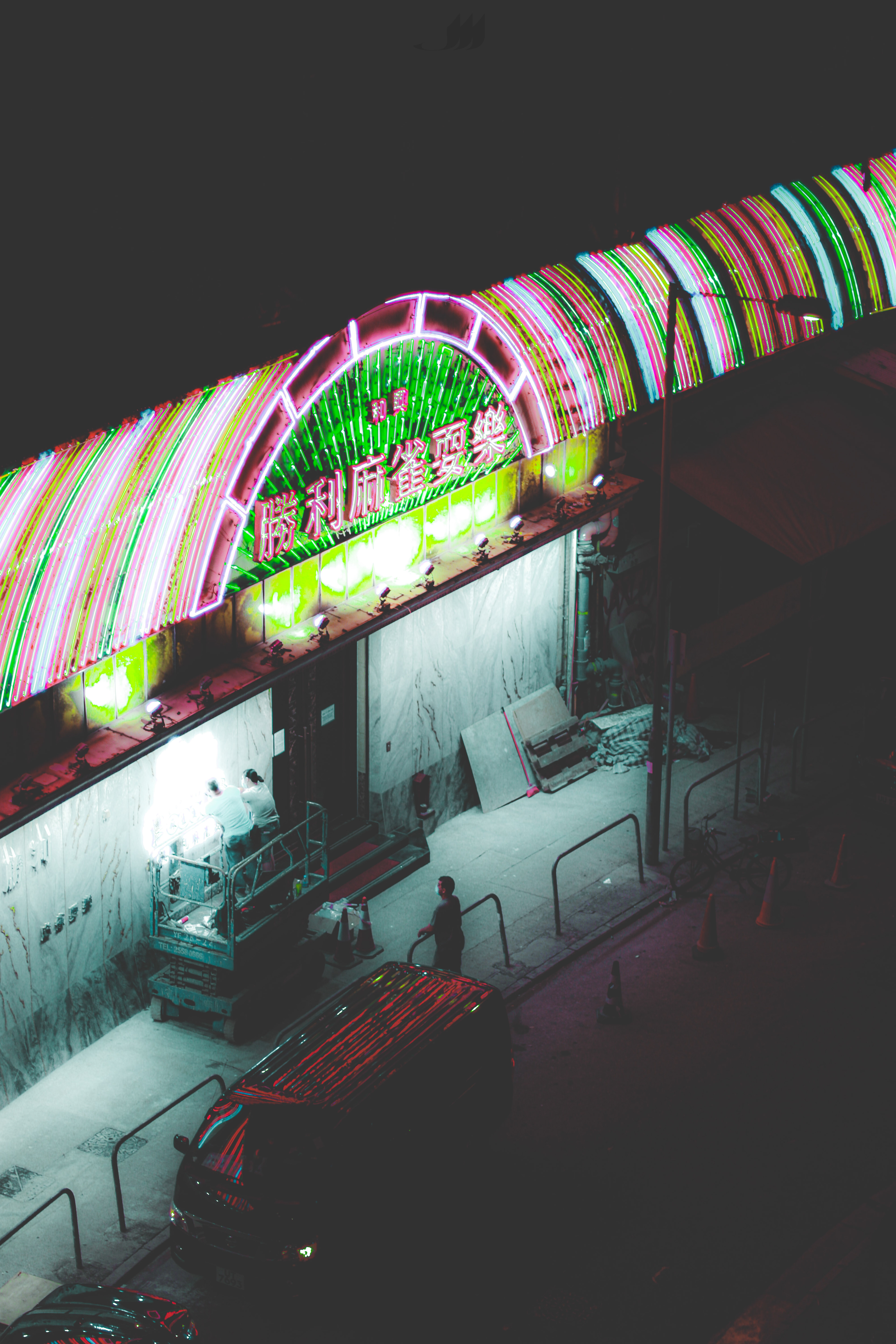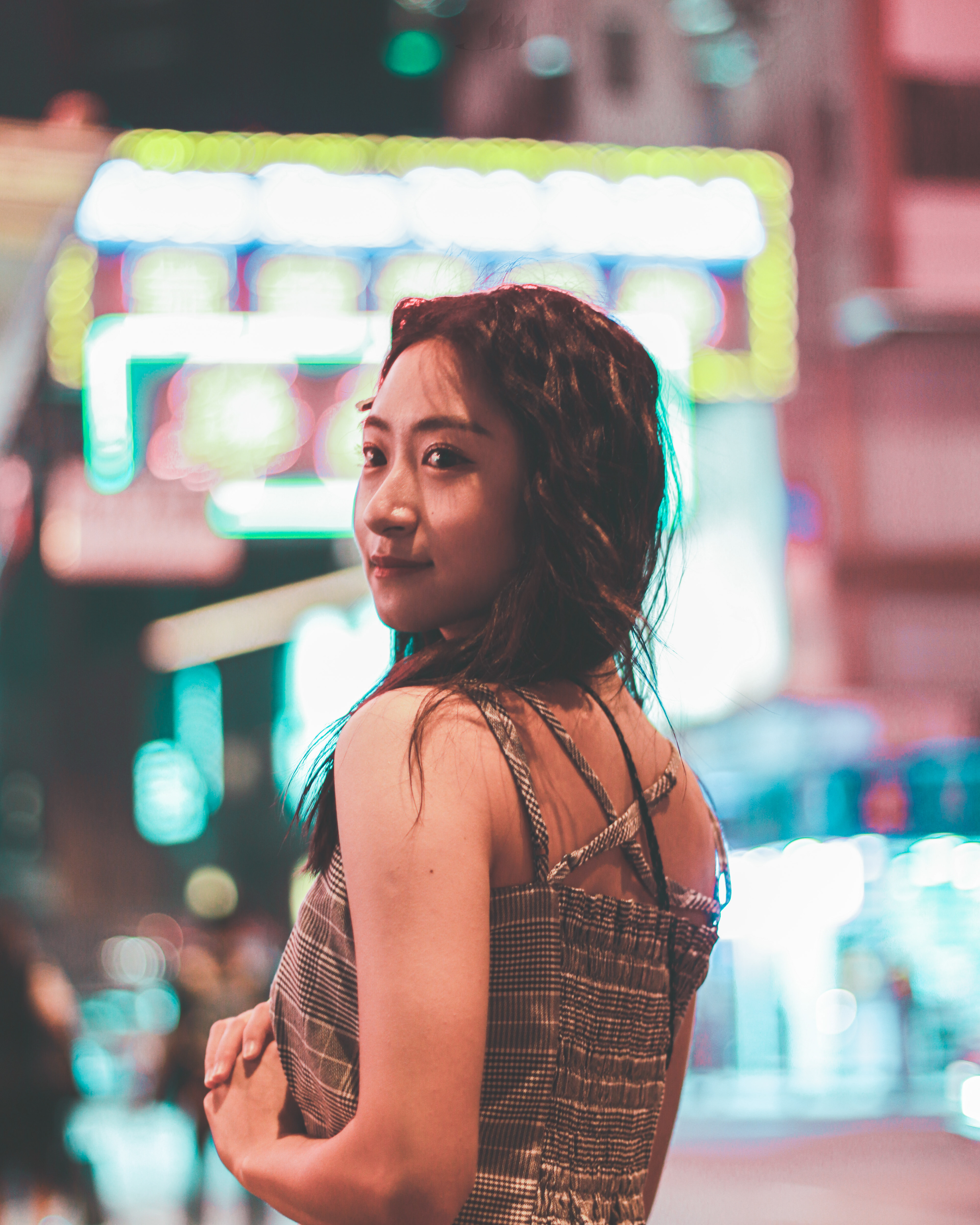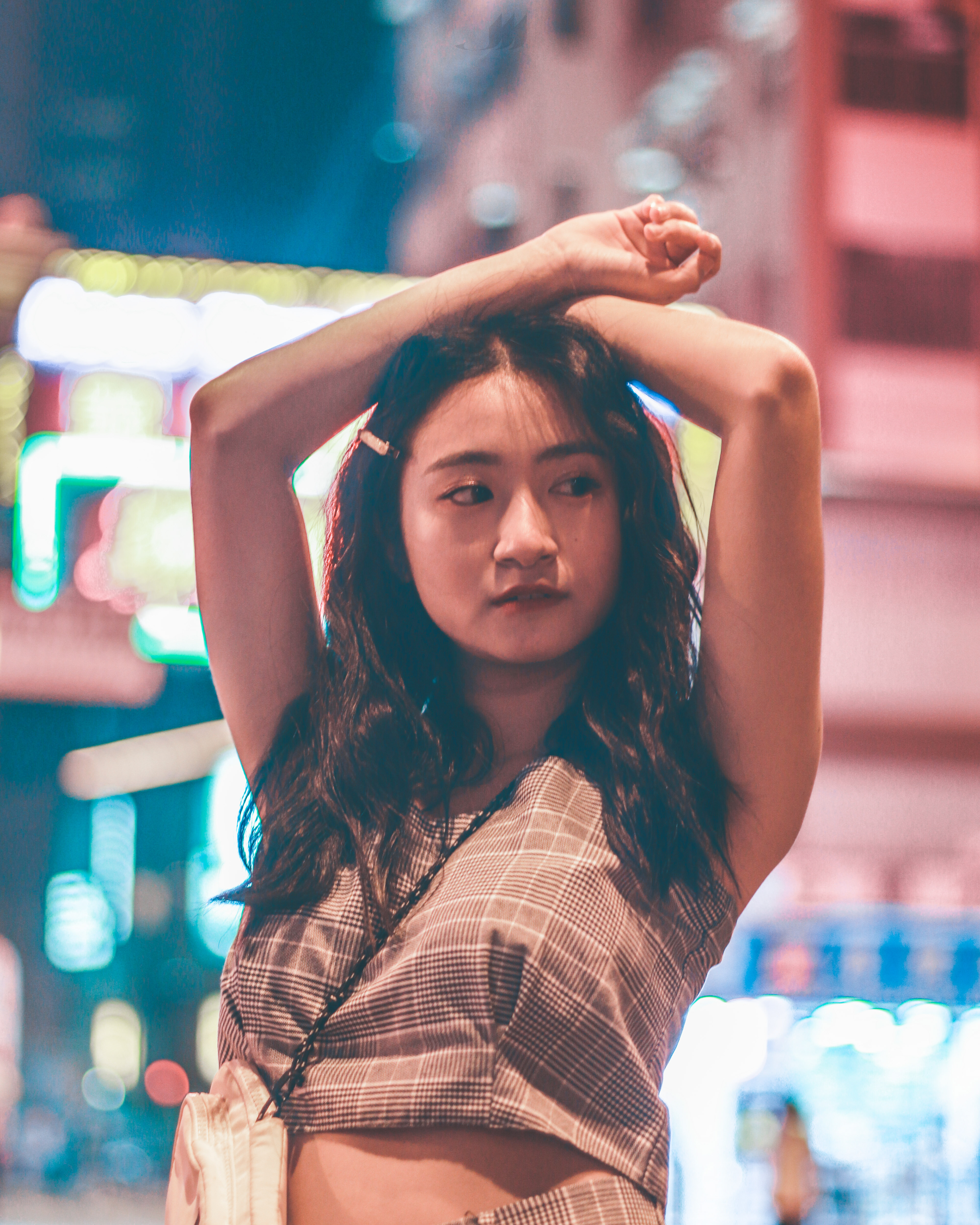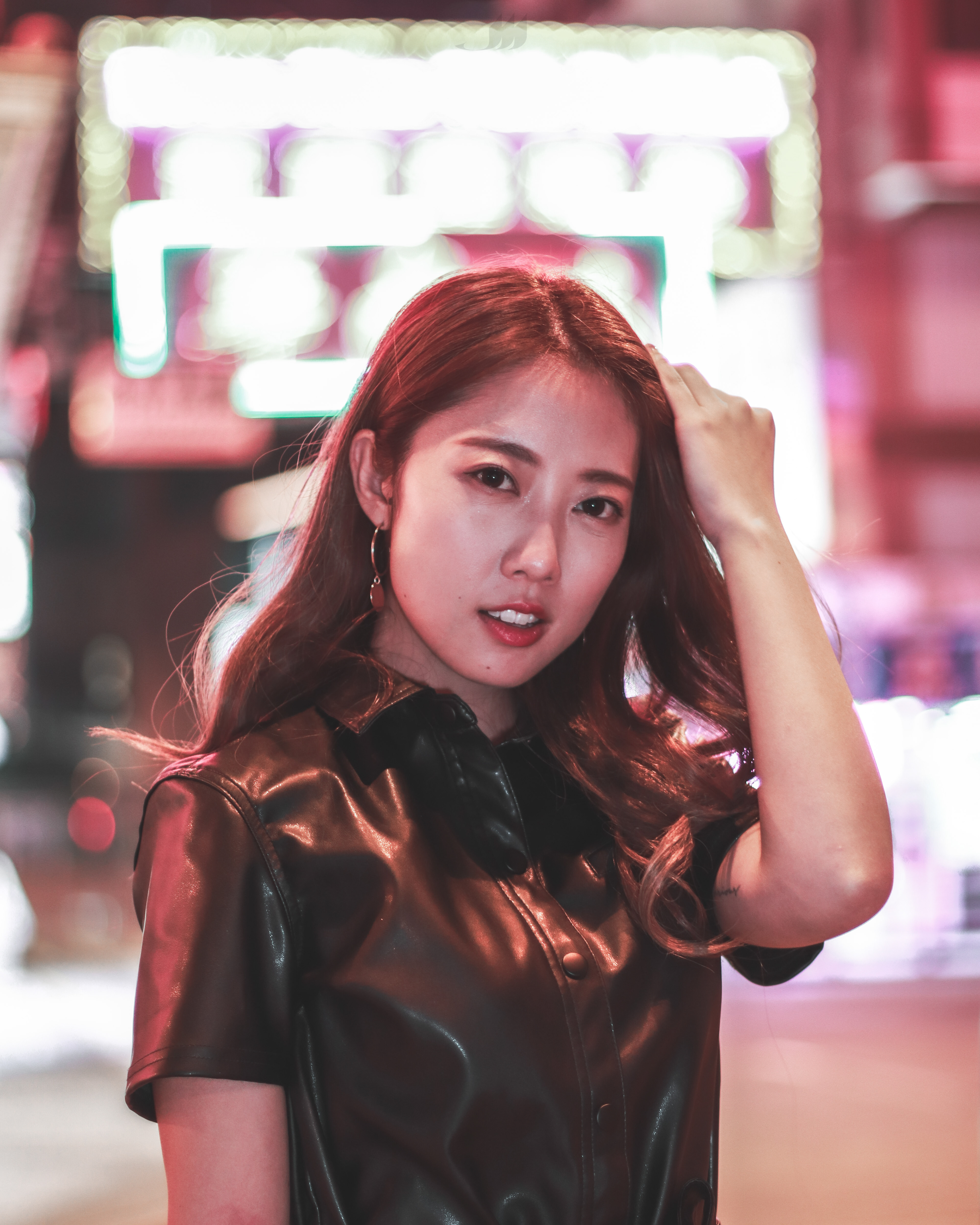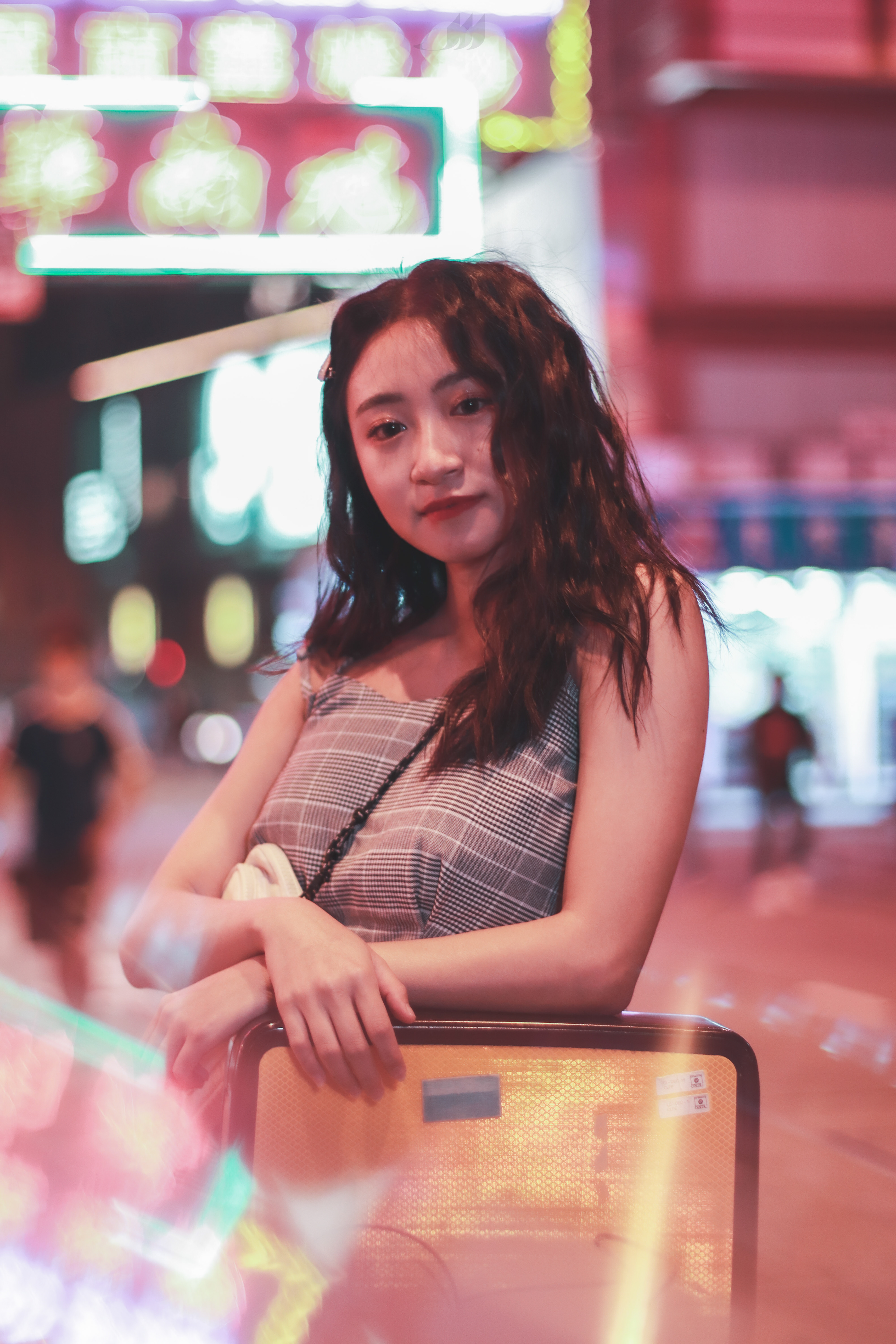 The soon-to-be extinguished, classic-style HK neon signs are wonders for photographers. To capture their final glory, we found two stars to compliment the scenery.